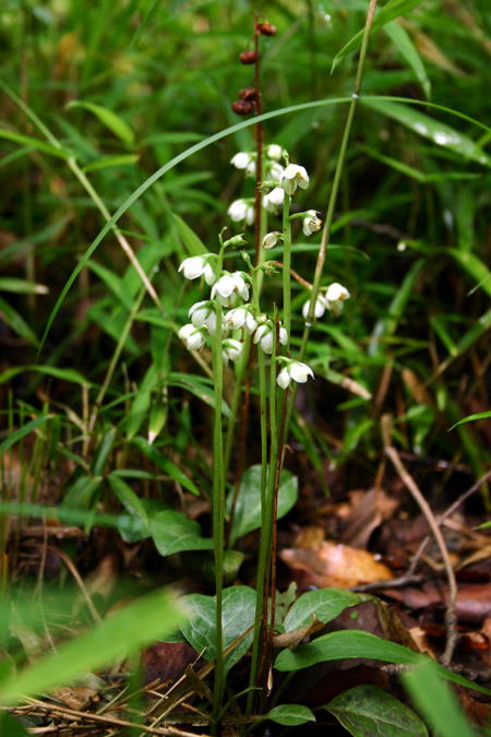 | ↑イチヤクソウ、あっちこっちに自生。踏みつけないように…。(撮影:2004.5.28) |