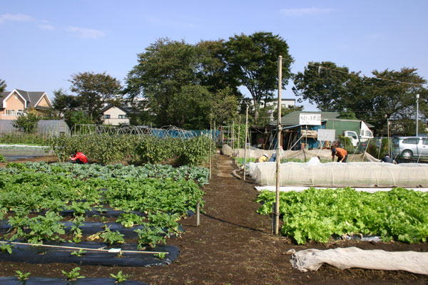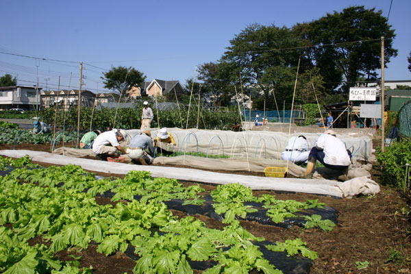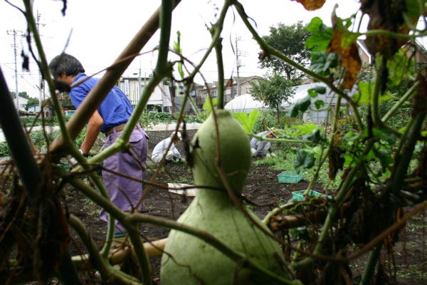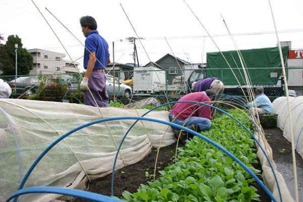 小松菜の収穫風景。 (撮影日:2004.8.10.10) |