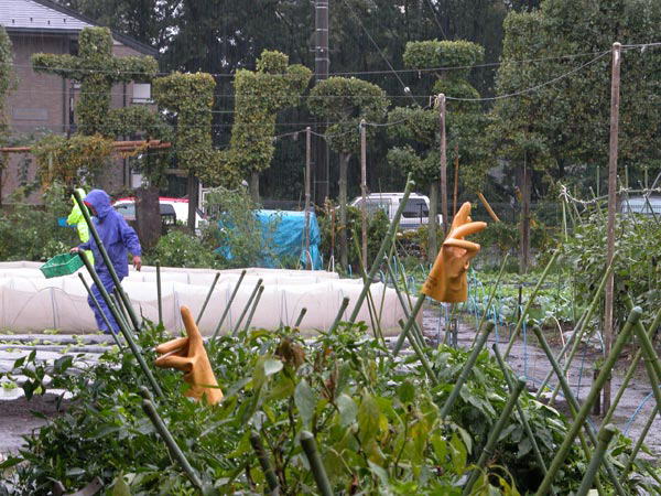 今日は土砂降りでした。小さな苗が雨に流されないように手入れなどもします。 (撮影日:2004.10.3) |