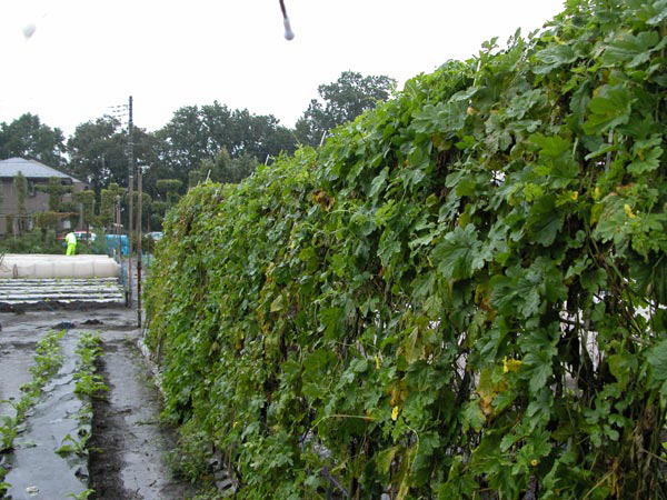 水溜りが大根を飲み込みそうです。ゴーヤはそろそろ終わりです (撮影日:2004.10.3) |